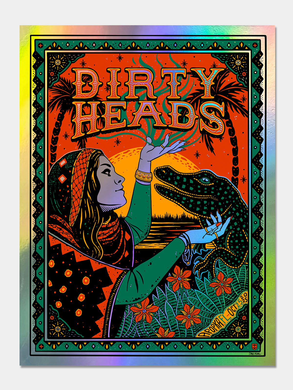 It was great to be back in Florida playing a great amphitheater in Apopka. The South is filled with many enchanting stories and myths about the local wildlife. With the show being close to Halloween, I wanted to use a theme that incorporates dark magic. The main character, a Bohemian Sorceress, is casting a spell over an alligator from Lake Apopka. Cheers! ~DF